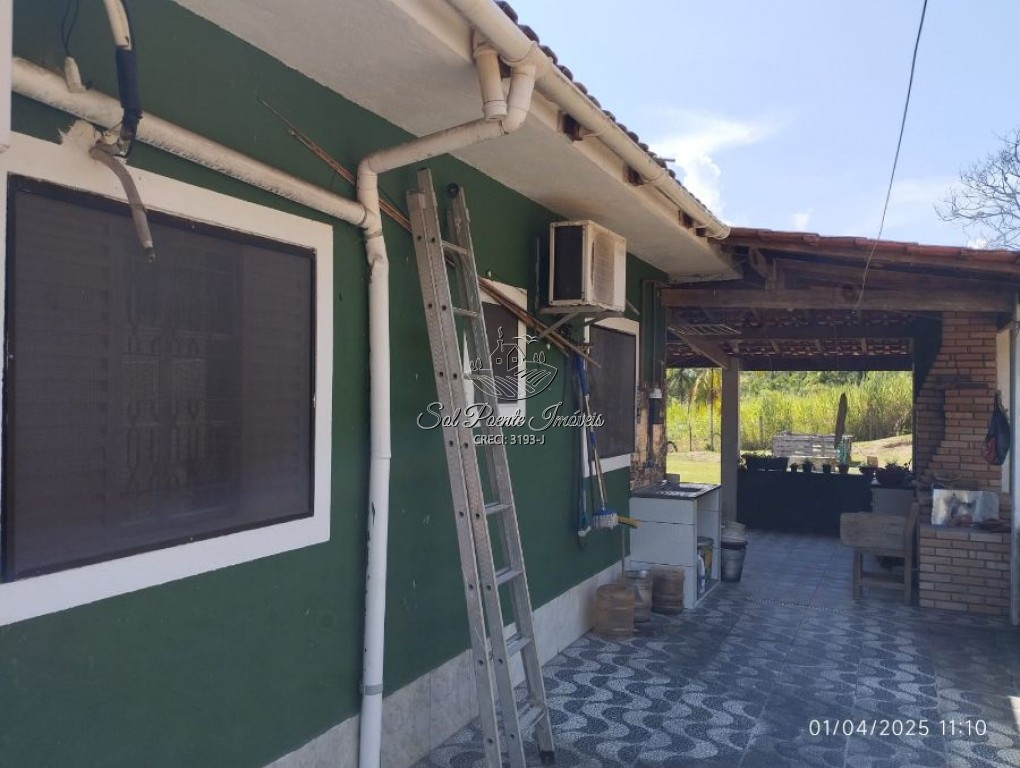 Sítio com 3,9 alq. com casa sede e casa para caseiro, a casa sede é em laje coberta com telha de amianto, com energia solar instalada, área de pasto formado, lago com peixes diversos.
